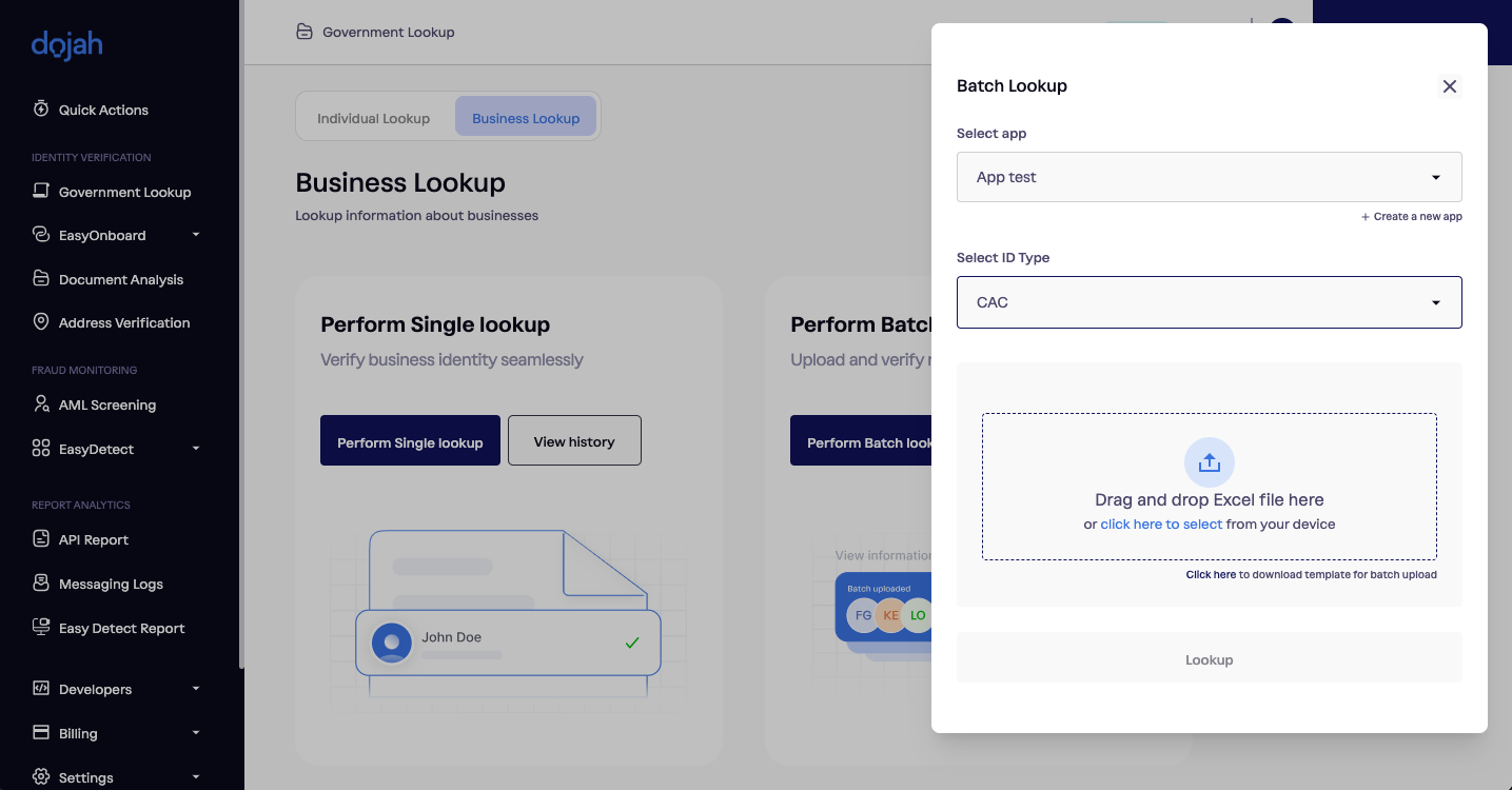 Customers with an extensive amount of user data aiming to authenticate their business identities through Business Lookup can utilize the Business Batch Lookup feature by following the outlined process: